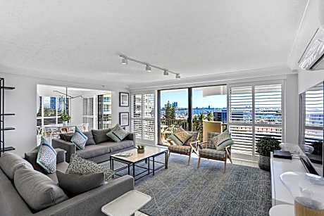 Located 164 feet from Main Beach, De Ville Apartments each feature a private balcony and kitchen facilities. Guests enjoy spa pool. De Ville self-contained Apartments is within a 5-minute walk from Marina Mirage Shopping Center and offers free parking. It is 0.6 mi from Sea World and 1.9 mi from Cavill Avenue. Set in tropical gardens, the spacious, self-catering apartments all feature a comfortable lounge area with a sofa set and a flat-screen TV with cable channels and a DVD player. Most apartments are also air conditioned. Guests can play a game on the tennis court, then relax in the spa or sauna. Other amenities include a tour desk and barbecue facilities.