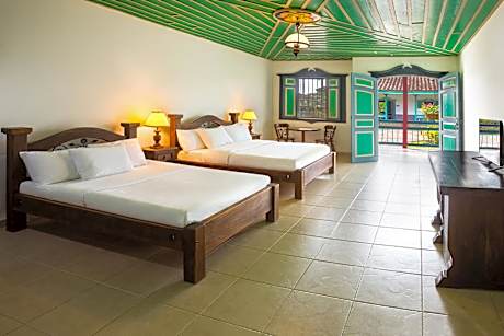 The Hotel Decameron Las Heliconias is located in Quimbaya-Quindio in one of the most representative regions of the Colombian coffee growing area. It has an outdoor pool, a restaurant. This all-inclusive hotel offers its guests rooms that include cable TV, a safe and linens. The private bathroom will provide toiletries and towels. Guests can also use the facilities and services at the Hotel Decameron Panaca, located within a 15-minute drive. Transportation is included. Featuring the characteristic local architecture of old coffee haciendas, Decameron Las Heliconias’ restaurant serves an international-style buffet at La Hacienda Restaurant. El Rincón de los Recuerdos and La Herrería are the other two available restaurants offering à la carte services. The property has 3 bars on site and a snack station. Other facilities available include tennis courts, a fitness center, nightclub, and a children's playground. Currency exchange services, a golf course and volleyball courts are also at hand. Guests will be able to attend Sunday mass at this hotel. License Number(s): RNT 33132
