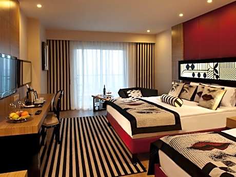 On the Mediterranean coast with a private beach, this seafront hotel features a unique architecture and luxurious interiors. The property includes outdoor pools, spa center and a tennis court. The chic rooms of Delphin Imperial Lara are decorated in contemporary design. Air conditioning and LCD TV with satellite TV channels are included in all rooms. Some rooms have stunning views of the sea. Breakfast, lunch and dinner are served as an open buffet in the main restaurant with many options. Fusion Restaurant serves unique tastes of international cuisine and high quality wines are offered by DaVinci Restaurant. Guests can enjoy the well-equipped fitness center and sweat out in the sauna after a workout. There is also a Turkish bath in the spa center for relaxation and massages are available. Antalya city center is 9 miles from Delphin Imperial Lara. Antalya Airport is a 20 minute drive away.