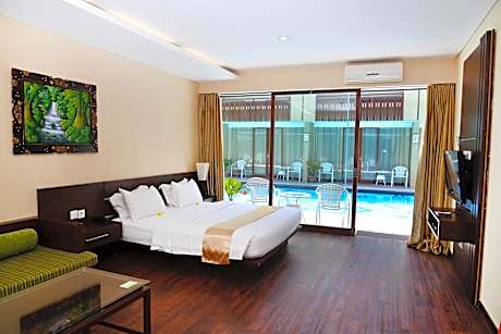 Devata Suite & Residence provides flawless service and all the necessary facilities for visitors. Remain linked during your visit by utilizing the complimentary internet access available. Prior to your check-in date, you can arrange airport transportation services, guaranteeing a seamless and efficient experience for both arrival and departure.Discovering Bali becomes even more accessible, thanks to the car hire amenities provided at the hotel.The hotel offers complimentary parking for guests who arrive with their own mode of transport. Effortlessly plan your daily activities and travel requirements with concierge service, luggage storage and safety deposit boxes provided by the front desk services. Securing passes to the city's top attractions is simple with the hotel's ticket service and tours.For extended visits or whenever required, the dry cleaning service and laundry service ensures your preferred travel garments remain clean and accessible.During leisurely days and evenings, in-room amenities such as room service and daily housekeeping enable you to maximize your stay in the room. The hotel is completely smoke-free.In limited designated zones, smoking is exclusively permitted.Crafted for coziness, every guestroom provides an array of features, guaranteeing a tranquil night's sleep while maintaining the level of comfort. For a more enjoyable stay, select rooms at hotel are equipped with linen service and air conditioning. At Devata Suite & Residence, guests can choose from a variety of room configurations, some of which feature separate living room and balcony or terrace. Expand your in-room entertainment choices with various amenities, such as cable TV offered in certain accommodations.Rest assured that your hydration needs will be met, as some guestrooms are equipped with a refrigerator, a coffee or tea maker, bottled water, instant coffee, instant tea and mini bar. It is worth noting that certain guest bathrooms feature a hair dryer, toiletries and bathrobes for your convenience. Begin your holiday mornings right with your essential cup of coffee, offered daily at the cafe on-site. During your visit, indulge in a range of delightful culinary choices at hotel to enhance your experience.Experience a fantastic evening effortlessly! Relish an entertaining night without venturing beyond the confines of the bar.During your stay at hotel, an array of engaging activities and amenities guarantees a delightful experience.During your stay, the hotel provides direct access to a beach, ensuring you remain near the sea throughout your visit. Begin your holiday perfectly by taking a plunge into the swimming pool.