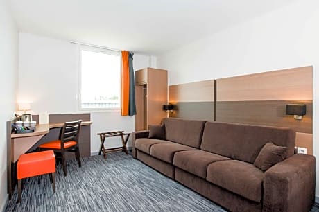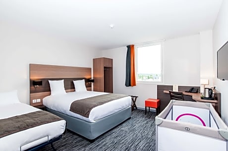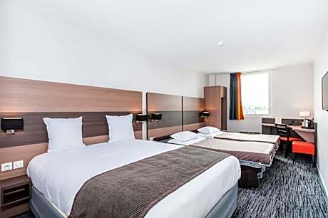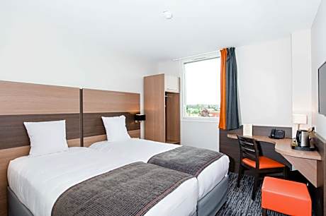 Dios Hotel is located in Bruguières, a 15-minute drive north of Toulouse Blagnac Airport and just 1.9 mi from Salle des Spectacles Bascala. It offers air-conditioned rooms with free high speed WiFi access. Featuring a modern décor, each room at Dios Hotel includes a flat-screen TV, a desk, an electric kettle and comes with a private bathroom fitted with a walk-in shower and separate private toilet. Within 0.9 mi, guests can find restaurants and stores. A 24-hour front desk and newspapers are at guest’s disposal. The hotel is a 25-minute drive from the center of Toulouse. Dios Hotel offers free private parking.