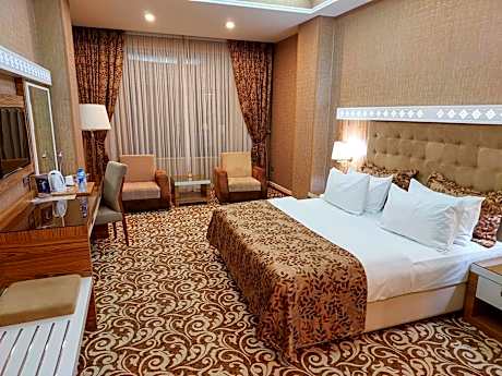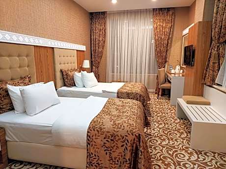 Located 7 minutes’ walk from Heydar Alyev Cultural Center in Baku city, this hotel features a sauna and free private parking. It offers air-conditioned rooms with a flat-screen TV. Each modern room at Graaf Hotel Hotel is decorated in brown tones and includes a mini-bar. Bathrooms come with slippers. Divan’s restaurant serves Turkish cuisine, as well as international dishes. Guests can enjoy a drink in the lobby bar. Relaxation at Divan Express is provided by the sauna, and there is also a fitness center on site. Nurimanov Metro Station and Park are 10 minutes’ walk from Graaf Hotel Hotel, while Baku’s historical Old Town district is 3.7 mi away. Heydar Alyev Airport is 25 minutes’ drive from the hotel. Hotel Ganjlik metro station (0.6 mi) and Ganjlik Mall.