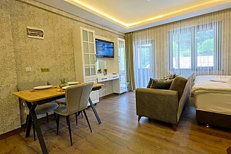 Offering mountain views, Doğa Boutıque Hotel in Uzungöl features accommodations and a garden. Private parking is available on site at this recently renovated property. The accommodation offers a 24-hour front desk, full-day security, and currency exchange for guests. At the condo hotel, units include a desk and a flat-screen TV. The rooms are equipped with a kettle, a private bathroom, and free Wifi, while certain rooms here will provide you with a balcony and some have river views. At the condo hotel, the units are equipped with bed linen and towels. The area is popular for walking tours, and car rental is available at the condo hotel. A baby safety gate is also available for guests at Doğa Boutıque Hotel. Uzungol Plateau & Lake is a 11-minute walk from the accommodation. Trabzon Airport is 53 miles away, and the property offers a paid airport shuttle service.