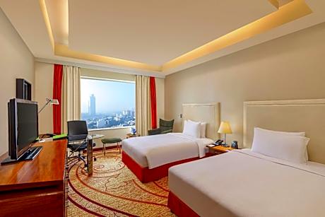 Great care is taken to ensure guests experience comfort through top-notch services and amenities. Stay connected with your associates, as complimentary Wi-Fi is available during your entire visit.The hotel offers car hire amenities to assist you in discovering your desired offerings in New Delhi and NCR. When arriving by car, you'll be grateful for the on-site complimentary parking at hotel.The hotel offers reception amenities including concierge service, luggage storage and safety deposit boxes to ensure a comfortable stay for guests.Should you require it, the tours can even assist you in booking tickets and securing reservations for the finest shows and events in the vicinity. Whether you're here for an extended stay or simply require fresh garments, the hotel ensures your cherished travel attire remains spotless and accessible with the convenience of laundry service located on the premises.Your stay will be comfortable with the presence of 24-hour room service, room service and daily housekeeping as an in-room amenity for your relaxation and enjoyment. In order to ensure the utmost level of relaxation, the guestrooms feature an inviting design and are equipped with all basic necessities, creating a delightful stay experience.To ensure your satisfaction, certain rooms in the hotel come fitted with blackout curtains for a more pleasant stay.Several chosen accommodations at DoubleTree by Hilton Gurgaon have a balcony or terrace incorporated into the room design. In select rooms, visitors can enjoy a touch of amusement with the availability of daily newspaper and television for their entertainment needs. Within specific rooms, instant tea and mini bar is conveniently available for your use.Understanding the significance of bathroom facilities in enhancing visitor contentment, hotel offers a hair dryer, toiletries and bathrobes within a few chosen chambers. How about kicking off each day of your getaway with a delicious cup of coffee? At the hotel, relish in the invigorating taste of a freshly brewed, excellent coffee. Various excellent meal offerings at hotel ensure that enticing and easily accessible options are constantly available. Upon your arrival, don't miss experiencing bar for enjoyable in-house evening entertainment.Throughout the day, engage in the entertaining activities available at DoubleTree by Hilton Gurgaon.Unwind by the pool at hotel and cherish a leisurely moment. Guests who enjoy maintaining their fitness regimen while on holiday can visit the fitness center provided by hotel.