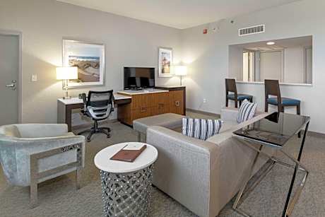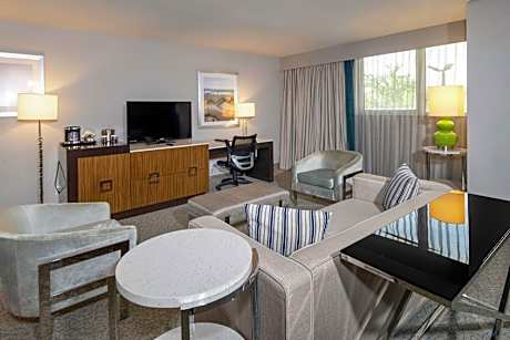 El DoubleTree by Hilton Hotel Jacksonville Airport ofrece piscina al aire libre. Hay wifi gratis. Las habitaciones disponen de baño privado con bañera o ducha. Incluyen despertador y TV de pantalla plana por cable. También incluyen escritorio y nevera pequeña. Este DoubleTree del Jacksonville Airport cuenta con gimnasio abierto las 24 horas y consigna de equipaje. También dispone de salas de reuniones. El Frequency Restaurant & Lounge sirve desayuno y cena. Este hotel de Jacksonville se encuentra a 24 km en coche del EverBank Field y del Jacksonville Landing/Riverwalk, y a 16 km del Zoológico y Jardines de Jacksonville. El Aeropuerto Internacional de Jacksonville está a 1 km.
