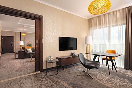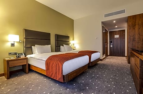 El DoubleTree by Hilton Łódź se encuentra en el centro de la ciudad, a solo 1 km de la principal calle comercial, Piotrkowska, y a un corto paseo del Atlas Arena, un popular recinto deportivo y de conciertos. La estación de tren de Lódz Kaliska está a 1 km. El hotel ofrece amplias habitaciones con ventanales. Todas están equipadas con camas Sweet Dreams, aire acondicionado, artículos para preparar café y té, plancha y tabla de planchar, caja fuerte para portátil y televisor de pantalla plana de 40 pulgadas con 150 canales. Todas las habitaciones del DoubleTree by Hilton Lodz ofrecen un cómodo espacio de trabajo con acceso gratuito a internet de alta velocidad. Todos los baños están equipados con ducha a ras de suelo o bañera, así como zapatillas. Todas las mañanas, en el restaurante, los huéspedes pueden disfrutar del desayuno con una amplia selección de café y té, platos fríos y calientes, fruta y dulces. También se ofrecen zumos de frutas y verduras recién exprimidos. El restaurante a la carta Four Colors sirve innovadores platos internacionales que incluyen especialidades de la cocina polaca. Por la noche, los huéspedes pueden disfrutar de una amplia selección de cócteles y whisky en el Golden Bar. También hay servicio de habitaciones disponible las 24 horas. El hotel ofrece un spa y club de salud en la planta superior, con gimnasio abierto las 24 horas. Ofrece hot tub, saunas y piscina cubierta con vistas panorámicas de la ciudad. Se ofrece a los huéspedes una amplia gama de masajes y tratamientos de belleza con suplemento. DoubleTree by Hilton es el primer hotel de esta marca en Polonia. Sin salir del hotel, los huéspedes pueden visitar la popular sala de conciertos Wytwórnia Club. Al otro lado de la calle, en el parque Poniatowski, encontrará senderos para correr y pistas de tenis de tierra batida. DoubleTree by Hilton Lodz ha sido reconocido como el mejor hotel nuevo de Europa Central y Oriental en un concurso organizado por la revista Eurobuild CEE, además de recibir el premio al Mejor Edificio del Año 2013 de la Asociación Polaca de Ingenieros y Técnicos de la Edificación.