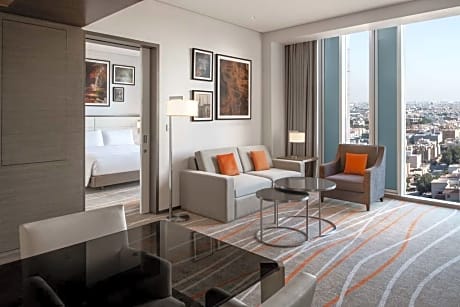 DoubleTree by Hilton Riyadh Financial District Hotel & Suites offers top-notch services and amenities, ensuring guests experience utmost comfort. Maintain seamless communication using the complimentary Wi-Fi at hotel.For visitors traveling by automobile, complimentary parking is available. During your stay at this fantastic hotel, the attentive front desk personnel can provide you with a range of amenities such as luggage storage and safety deposit boxes. For extended visits or whenever required, the laundry service ensures your preferred travel garments remain fresh and accessible.Craving relaxation? Make the most of your stay at the DoubleTree by Hilton Riyadh Financial District Hotel & Suites with convenient amenities like 24-hour room service and room service at your disposal.At DoubleTree by Hilton Riyadh Financial District Hotel & Suites, every guestroom is provided with convenient amenities and fittings to ensure a comfortable stay.Elevate your experience at hotel with the knowledge that certain rooms are equipped with blackout curtains, ensuring a more pleasant stay for you. Certain rooms offer in-room amusement features such as the television for your enjoyment. In select rooms within the hotel, instant tea and mini bar is available to cater to your requirements when desired.In the hotel, certain guest bathrooms come equipped with essential bathroom amenities, such as a hair dryer, toiletries and bathrobes, ensuring a comfortable stay for guests. At the hotel, an assortment of easily accessible and delicious meal choices are available to satisfy your appetite whenever it strikes.DoubleTree by Hilton Riyadh Financial District Hotel & Suites provides a superb assortment of leisure amenities for guests to enjoy. Conclude your holiday experience perfectly by visiting hot tub before you depart. Be sure to drop by the pool at hotel at least once during your stay. Discover the fitness amenities at hotel to maintain your health and strength during your getaway.