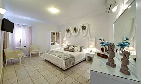Within a 3-minute walk of Fira’s center, Dream Island is a Cycladic-style hotel with a pool overlooking the Aegean Sea. It offers a bar and elegant rooms with balcony or patio and free Wi-Fi. Dream Island Hotel air-conditioned rooms are tastefully furnished and decorated in earthy tones. Room facilities include a flat-screen satellite TV, a fridge and a hairdryer. Most units enjoy views to the pool and the sea. Sun beds and umbrellas can be found around the swimming pool. Lounge areas and hammocks are also available, where guests can relax and enjoy the sunrise. The popular beach of Perissa is within a 20-minute drive. On-site parking is available free of charge.