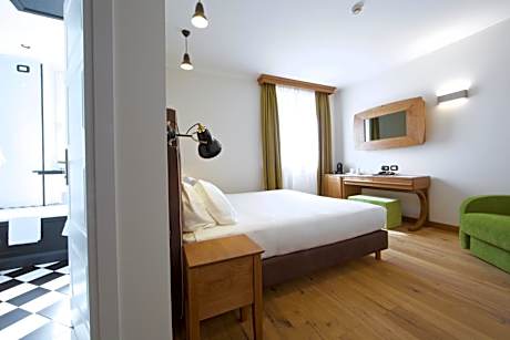 This triple room is finely decorated in retro style with French oak wooden floors and handcrafted Italian oak furniture. It has a smart IndelB mini-bar, a 32-inch LED TV with international channels, free WiFi and air conditioning.