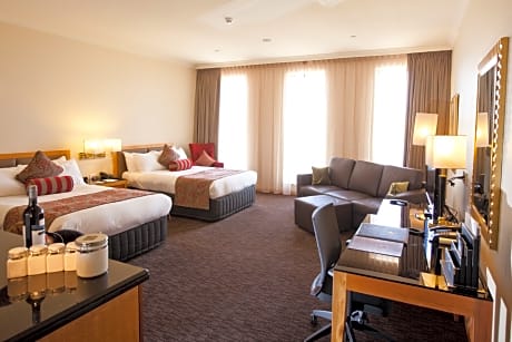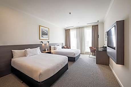 Ubicado en el distrito financiero central de Perth, el Duxton Hotel Perth, de 5 estrellas, ofrece habitaciones de lujo en una ubicación privilegiada. Sus instalaciones incluyen restaurante, bar, gimnasio y piscina al aire libre. Todas las habitaciones del Perth Duxton Hotel cuentan con aire acondicionado, TV de pantalla plana y baño privado, muchos de ellos con bañera de tamaño completo. Todas las habitaciones incluyen TV por cable y la mayoría tienen vistas al río Swan. El servicio de habitaciones está disponible las 24 horas. El gimnasio, totalmente equipado, cuenta con sauna y baño de vapor. El restaurante Firewater Grille sirve cocina internacional moderna y vinos de las mejores regiones vinícolas de Australia Occidental. El Duxton Hotel Perth se encuentra junto a la Sala de Conciertos de Perth y a 5 minutos a pie del río Swan.