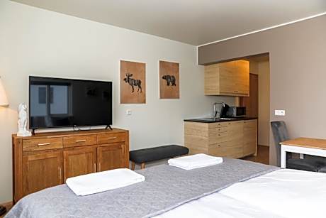The studio features a private entrance, a mini-bar, as well as a private bathroom boasting a shower and a hairdryer. Guests can make meals in the kitchen that has a stovetop, a refrigerator, kitchenware and a microwave. The studio offers a flat-screen TV, a tea and coffee maker, parquet floors, heating as well as city views. The unit has 1 bed.