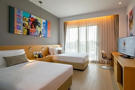At Eastin Thana City Golf Resort Bangkok, exceptional service and top-notch amenities create a memorable experience for guests.Complimentary internet access is available in the resort to ensure you stay connected during your visit.Discover the wonders of Bangkok with ease by utilizing the services provided by taxi and shuttle. Complimentary parking is available for guests. Continuously receive the support you require through front desk amenities such as luggage storage and safety deposit boxes.Always look your best in your preferred attire with the dry cleaning service and laundry service provided at Eastin Thana City Golf Resort Bangkok. Desire to unwind? Make the most of your visit at Eastin Thana City Golf Resort Bangkok with accessible amenities such as daily housekeeping. Due to health concerns, smoking is strictly prohibited within the entire premises of resort.Accommodations come equipped with all the conveniences required for a restful night's slumber.A selection of rooms feature blackout curtains and air conditioning to ensure your comfort and convenience.A few accommodations in Eastin Thana City Golf Resort Bangkok incorporate separate living room and balcony or terrace into their architectural arrangement.A few chosen rooms are equipped with daily newspaper, television and cable TV to ensure guest amusement. In certain rooms, the resort offers visitors access to a refrigerator, bottled water, a coffee or tea maker, instant coffee, instant tea and mini bar.Eastin Thana City Golf Resort Bangkok offers a hair dryer, toiletries and bathrobes in the restrooms of specific accommodations. A delightful breakfast is the perfect way to begin your day, and at Eastin Thana City Golf Resort Bangkok, you can always indulge in a scrumptious meal on-site.Allow your journey to be free from the pangs of hunger! On-site eateries offer delicious and accessible meal choices.At Eastin Thana City Golf Resort Bangkok, guests can take pleasure in the delightful recreational amenities provided for their entertainment.Conclude your days in complete tranquility by paying a visit to steam room and sauna for ultimate relaxation.At Eastin Thana City Golf Resort Bangkok, a wide array of amenities guarantees a fulfilling experience throughout your visit. Make your holiday truly memorable by taking a rejuvenating plunge into the pool. At the resort fitness center, you have the option to engage in your daily exercise routine or simply alleviate your jet lag by breaking a sweat.