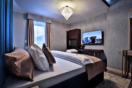 Elexus Apartments Poiana Brasov in Poiana Brasov provides accommodations with an indoor pool, massage services, and a bar. Private parking is available on site. The condo hotel offers an infinity pool with a pool bar, as well as a sauna and a 24-hour front desk. The units at the condo hotel feature private entrance and soundproofing so guests can enjoy a peaceful stay. Each room comes with a coffee machine, a flat-screen TV, a safety deposit box, and free Wifi, while certain rooms will provide you with a terrace and some have mountain views. At the condo hotel, each unit comes with a private bathroom with bathrobes and slippers. A selection of options including warm dishes, local specialities, and fresh pastries are served for the buffet breakfast. Guests may eat at the on-site family-friendly restaurant, which is open for dinner, lunch, and cocktails. Guests at the property can use the fitness room and wellness area, which offers a hot tub and a wellness packages. The White Tower is 6.5 miles from the condo hotel, while The Black Tower is 6.6 miles away. Sibiu International Airport is 96 miles from the property.