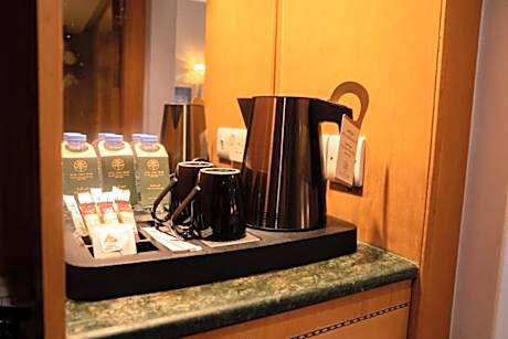 Fitted with blue printed carpeted floors, this air-conditioned room offers a small seating area, a flat-screen TV and a wardrobe. The bathroom is fitted with a shower and a hairdryer.