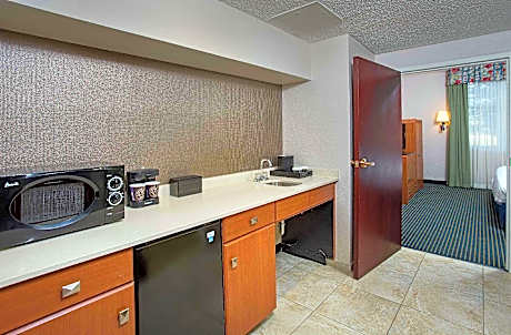 El Embassy Suites Hotel Lexington está ubicado en el corazón de la región Bluegrass Country de Kentucky, en el campus de investigación Coldstream de la Universidad de Kentucky. El hermoso entorno del hotel se encuentra junto a la I-75/64 en Newtown Pike, cerca de todos los lugares para equinos, granjas de caballos y muchas de las principales empresas de la zona. A solo 15 minutos del aeropuerto Bluegrass y a 5 km en automóvil, se encuentra en el centro de Lexington. Experimente el espíritu desenfrenado de la hospitalidad de Kentucky en este elegante hotel. Las características del hotel incluyen: Un amplio atrio iluminado por el cielo, un gran lugar para reunirse, relajarse y mantenerse conectado, Desayuno gratuito preparado a pedido y recepción del gerente todas las noches, Presentación contemporánea en un ambiente informal y cocina estadounidense en el restaurante Paddock Grille que sirve desayuno, almuerzo y cena todos los días, Mantenga un buen régimen de salud en un gimnasio bien equipado, piscina cubierta y una pista para correr, Más de 12,000 pies cuadrados de espacio para reuniones versátil y de última generación que incluye un elegante salón de baile con capacidad para 800 personas, Cómodo centro de negocios abierto las 24 horas. Las suites para huéspedes cuentan con: Acceso inalámbrico a Internet de alta velocidad en todo el hotel y en las 230 espaciosas suites de 2 habitaciones, Modernas comodidades del hogar: refrigerador, microondas y barra con fregadero, Generosas superficies de trabajo y mesa de comedor, además de dos teléfonos con buzón de voz. Barrio: El principal hotel de suites para la industria equina con su proximidad perfecta a Keeneland Racing and Sales, Fasig-Tipton, carreras de arnés en The Red Mile y más de 300 de las mejores granjas de caballos del mundo. A minutos de la Universidad de Kentucky, la sede mundial de Lexmark y a un corto trayecto en automóvil de la planta de fabricación de Toyota y Georgetown College. Hay mucho para hacer o ver con fácil acceso al mundialmente famoso Kentucky Horse Park, el famoso Rupp Arena, el Commonwealth Stadium, ambos sede de los UK Wildcats, Applebee's Park, sede de los Lexington Legends, los tours de Kentucky Bourbon, el Centro de Convenciones de Lexington y el centro comercial Fayette.