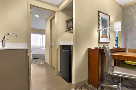 Este hotel, situado en Texas, ofrece servicio de traslado gratuito al aeropuerto internacional de San Antonio y a un radio de 5 km. Cuenta con piscina cubierta y suites con nevera. Todas las suites del Embassy Suites San Antonio incluyen TV por cable con películas de pago y reproductor de DVD. Para mayor comodidad de los huéspedes, también hay cafetera y microondas en las suites. El Embassy Suites San Antonio International Airport cuenta con gimnasio. Los huéspedes pueden solicitar servicio de habitaciones y utilizar las instalaciones de lavandería y el centro de negocios del establecimiento. El AT&T Center, sede del equipo de béisbol San Antonio Spurs, está a 18 km del Embassy Suites en la carretera US Highway 281 North. El centro de San Antonio y el paseo del río están a 14,5 km.