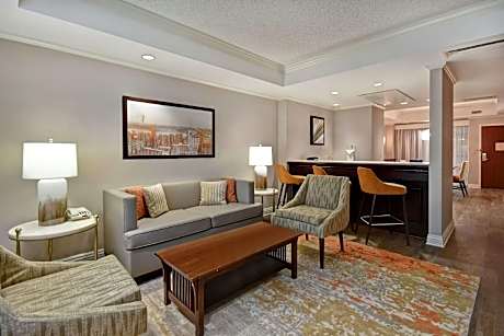 Este hotel de suites de Little Rock se encuentra a 15 minutos en coche del distrito Rivermarket. Cada amplia suite cuenta con sala de estar independiente, microondas y nevera. El Embassy Suites Little Rock sirve un desayuno caliente todos los días. Los huéspedes también pueden disfrutar de bebidas y aperitivos en la recepción del gerente por la noche. El Athletic Club Sports Bar & Grill del hotel ofrece cocina americana para el almuerzo y la cena. El Embassy Suites de Little Rock cuenta con piscina cubierta y un moderno gimnasio. El hotel también ofrece un centro de negocios y servicio de lavandería. La biblioteca presidencial Clinton se encuentra a 15 minutos en coche del Embassy Suites de Little Rock. El Museo de Ciencia e Historia de Arkansas está a 12,8 km.