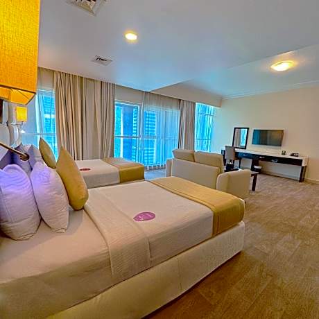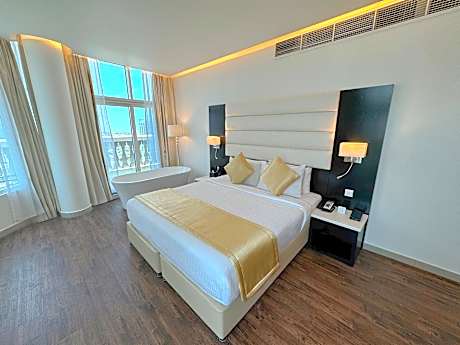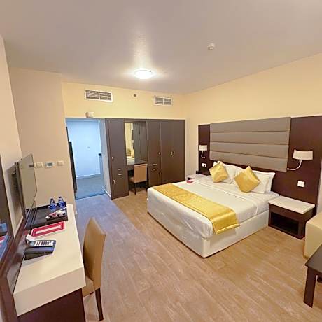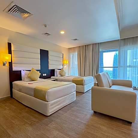 Great care is taken to ensure guests experience comfort through top-notch services and amenities.Stay connected with your associates, as complimentary Wi-Fi is available during your entire visit. To facilitate your arrival and departure, you can pre-book airport transfer services prior to checking in.The serviced apartment offers taxi and shuttle amenities for your ease in navigating around Dubai.When arriving by car, you'll be grateful for the on-site complimentary parking at serviced apartment. The serviced apartment offers reception amenities including concierge service and luggage storage to ensure a comfortable stay for guests.Should you require it, the tours can even assist you in booking tickets and securing reservations for the finest shows and events in the vicinity. Whether it's an extended stay or simply needing fresh attire, laundromat, dry cleaning service and laundry service provided by serviced apartment ensures your cherished travel garments stay spotless and accessible. Your stay will be comfortable with the presence of 24-hour room service, room service and daily housekeeping as an in-room amenity for your relaxation and enjoyment. Need something at the last minute? The convenience stores has you covered, ensuring your requirements are met without any inconvenience. Smoking is permitted solely in the specified smoking zones allocated by serviced apartment.In order to ensure the utmost level of relaxation, the guestrooms feature an inviting design and are equipped with all basic necessities, creating a delightful stay experience.To ensure a pleasant stay, a selection of rooms at serviced apartment come furnished with linen service, blackout curtains and air conditioning, all designed with your ease in mind.At Emirates Grand Hotel, various room configurations are available, featuring separate living room and balcony or terrace in some rooms.In select rooms, visitors can enjoy a touch of amusement with the availability of television and cable TV for their entertainment needs.Within specific rooms, a refrigerator, bottled water, a coffee or tea maker, instant coffee, instant tea and mini bar is conveniently available for your use.Understanding the significance of bathroom facilities in enhancing visitor contentment, serviced apartment offers a hair dryer, toiletries and bathrobes within a few chosen chambers. Start your day stress-free at Emirates Grand Hotel as breakfast is made available for you on the premises. How about kicking off each day of your getaway with a delicious cup of coffee? At the serviced apartment, relish in the invigorating taste of a freshly brewed, excellent coffee. Various excellent meal offerings at serviced apartment ensure that enticing and easily accessible options are constantly available. Visitors with specific dietary preferences can savor a variety of culinary styles at Emirates Grand Hotel, featuring halal choices to accommodate their needs.Upon your arrival, don't miss experiencing bar for enjoyable in-house evening entertainment.Throughout the day and night, guests can enjoy light refreshments with the serviced apartment offering vending machines.Throughout the day, engage in the entertaining activities available at Emirates Grand Hotel.Unwind and conclude each day delightfully by stopping by massage and spa, ensuring a soothing experience.Guests who enjoy maintaining their fitness regimen while on holiday can visit the fitness center provided by serviced apartment.