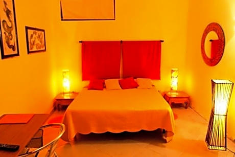Air-conditioned room with an LCD TV and fridge. It has as a small terrace overlooking the garden.