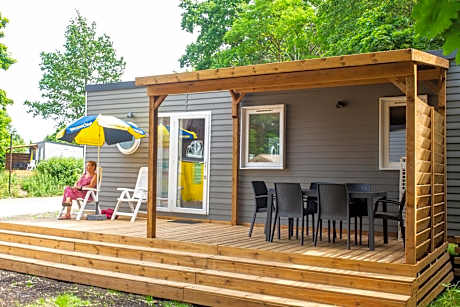 The air-conditioned mobile home has 2 bedrooms and 1 bathroom with a shower and a hairdryer. In the kitchenette, guests will find a stovetop, a refrigerator, kitchenware and a microwave. Boasting a terrace with garden views, this mobile home also features a tea and coffee maker and a flat-screen TV with satellite channels. The unit has 3 beds.