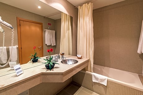 Centrally located in Alcanena, Eurosol Alcanena Hotel is near Serra de Aire e Candeeiros Natural Park that belongs to Santarem district. Eurosol Alcanena presents air-conditioned classically styled bedrooms equipped with satellite TV, mini bar, a desk and a closet. Each room has their private bathroom with a bathtub or shower, hair dryer and amenities. Guests can enjoy the restaurant with a bar service on the ground floor. The gym and sauna are subjected to availability, additional cost and previous booking and the access to the Alcanena Municipal Swimming Pools depends on capacity. The hotel reception is open 24 hours a day and offers free private parking available with an electric vehicle charging station (subject to availability). Nearby it is possible to visit Olhos d’Água river beach (3.7 mi) and Alviela’s springs, very popular for swimming and kayaking. There are also the Mira d’Aire caves (6.8 mi), Pegadas dos Dinossauros Natural Monument (9.3 mi), Serra de Aire e Candeeiros Natural Park (17 mi) and Fatimas’s Sanctuary (19 mi).