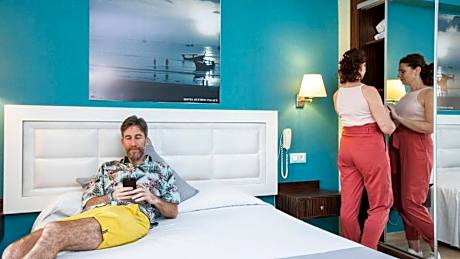 Evenia Olympic Palace Hotel is part of the Evenia Olympic Resort, where guests can enjoy tropical swimming pools, a water park, gardens as well as entertainment programs for all ages. All air-conditioned rooms at the Evenia Olympic Palace have 2 satellite TVs, a seating area and a private balcony. There is a fridge and a safe, and the private bathroom comes with a hairdryer and amenities. Set in gardens, the Olympic Resort includes a restaurant, pool bar, snack bar and a nightclub. A full entertainment program, play area and mini club are offered for children. The Resort has a Sport Club that includes a water circuit with indoor pool, a sauna, hammam and spa bath. Its fitness center offers a spinning room, body building and aerobics. Access to all these facilities is available at an extra cost. There is a 24-hour front desk and car hire is offered. On-site parking is available for an extra charge. Wi-Fi is available in public areas for a supplement.