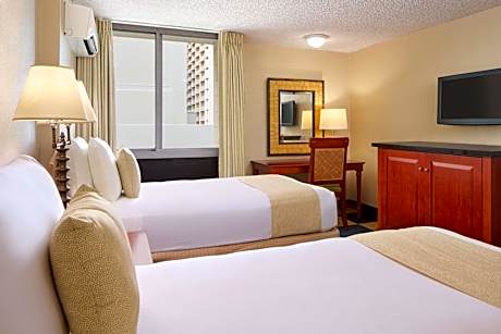 TA-177-899-9296-01#HONOLULU# A solo dos cuadras de la playa de Waikiki, el Ewa Hotel Waikiki se encuentra a pocos pasos de algunos de los principales puntos de interés de la zona y ofrece alojamiento confortable en una ubicación privilegiada. Todas las habitaciones disponen de aire acondicionado, TV con canales por cable, teléfono con llamadas locales y gratuitas, nevera y cafetera. Todos los baños incluyen ducha, bañera, secador de pelo y artículos de aseo gratuitos. Algunas habitaciones ofrecen terraza/balcón y cocina americana con fogones y utensilios de cocina. El hotel cuenta con una terraza solárium en la octava planta, con impresionantes vistas al océano. Las atracciones de la zona, como el Monumento Estatal Diamond Head y el Área Recreativa Estatal Ala Moana, están a poca distancia del Ewa Hotel Waikiki. Los huéspedes del hotel pueden disfrutar del Parque Kapiolani, así como de actividades recreativas como surf y golf.