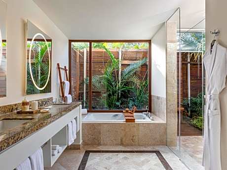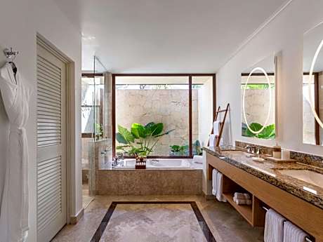 EspañolEste resort de lujo ganador del premio AAA Five Diamond Award en la Riviera Maya está formado por una serie de edificios de poca altura conectados por canales. Está rodeado por un exuberante bosque tropical y ofrece maravillosas vistas al mar. El Fairmont Mayakoba de 20,000 pies cuadrados ofrece áreas de tratamiento en las copas de los árboles y una variedad de tratamientos de belleza y masajes basados en la tradición y la flora local de la región. Hay un cargo adicional para acceder al gimnasio y al área de spa. Hay varios restaurantes y bares en el resort, incluido un restaurante de parrilla y mariscos, un bar de sushi y un bar en la piscina. Discovery Club & Adventure Camp ofrece actividades culturales y educativas para niños de 5 a 12 años. El Camaleon Riviera Maya Golf Club, reconocido por la Sociedad Audubon, es adecuado para todos los niveles y fue diseñado por Greg Norman. El resort es peatonal y los huéspedes pueden acceder a las diferentes áreas en bote, a pie siguiendo los senderos naturales bien marcados, o en bicicleta o en un carrito de golf eléctrico conducido por el personal. El complejo Mayakoba está situado junto al campo de golf de 18 hoyos El Camaleón y cuenta con 5 piscinas al aire libre y acceso privado a la playa de Playa del Carmen. El aeropuerto internacional de Cancún está a unos 45 minutos en coche y Playa del Carmen se encuentra a unos 15 minutos en coche.