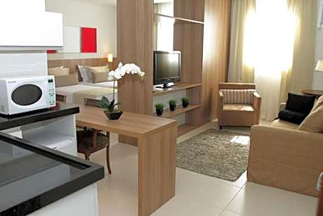 Beautiful modern apartments are provided here, including free Wi-Fi and free parking. Faria Lima Flat is conveniently located 1.1 mi from Rio Preto center and 1.2 mi from the bus station. The spacious apartments feature light-colored wooden furniture and contemporary artworks. They offer air conditioning, LCD cable TV and telephone. Their mini kitchen is equipped with a microwave, granite sink and dining counter. Guests at Faria Lima Flat Service enjoy a daily buffet breakfast featuring fresh tropical fruits and juice, bread rolls and cakes. Room service is also available. The flats are located a 15-minute walk from popular Riopreto Shopping Mall. Marginal Arthur Nonato Road is only 1 block away.
