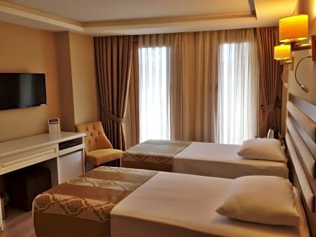 Experience an abundance of unparalleled facilities and features at Feza Hotel.Maintain seamless communication using the complimentary Wi-Fi at hotel. Effortlessly arrange transportation to and from the airport using the hotel's airport transfer services.Discovering Trabzon becomes even more accessible through the taxi, car hire and shuttle amenities provided at the hotel. For visitors traveling by automobile, complimentary parking is available.During your stay at this fantastic hotel, the attentive front desk personnel can provide you with a range of amenities such as concierge service, express check-in or check-out, luggage storage and safety deposit boxes.In search of city's top entertainment, seek assistance at the hotel's ticket service and tours for reservations.At the hotel, utilize the on-site laundromat, dry cleaning service and laundry service to maintain your beloved travel attire fresh, allowing you to bring fewer clothes.Craving relaxation? Make the most of your stay at the Feza Hotel with convenient amenities like 24-hour room service and room service at your disposal. For all your minor, last-minute requirements, the convenience stores can promptly cater to them, eliminating the need to venture out. Kindly note that smoking is prohibited in the hotel to ensure fresher air for all visitors.For visitors wishing to smoke, designated smoking zones can be found.At Feza Hotel, every guestroom is provided with convenient amenities and fittings to ensure a comfortable stay. Enhance your experience at hotel with the knowledge that certain rooms are equipped with linen service and air conditioning for your convenience.A few accommodations within Feza Hotel offer unique design elements such as a balcony or terrace.Certain rooms boast in-room amusement features such as television and cable TV, offering guests an enjoyable stay.In select rooms within the hotel, bottled water, a coffee or tea maker and mini bar is available to cater to your requirements when desired. In the hotel, certain guest bathrooms come equipped with essential bathroom amenities, such as a hair dryer and toiletries, ensuring a comfortable stay for guests. Be sure to stop by the elegant executive lounge where you can experience the lavish amenities and ambiance. Begin your day carefree at Feza Hotel, as complimentary breakfast is offered for your convenience.At Feza Hotel, they are committed to catering to your unique requirements. They offer a variety of meal choices, encompassing halal alternatives for those with special dietary preferences.At Feza Hotel, visitors have the option to receive groceries directly in their accommodation, ensuring outstanding comfort and simplicity when it comes to meals.During your stay at hotel, an array of engaging activities and amenities guarantees a delightful experience. Conclude your holiday experience perfectly by visiting salon before you depart.