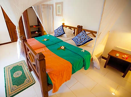 Set in a tropical garden on the North West coast of Zanzibar, Flame Tree Cottages offers accommodations on Nungwi Beach. It features a tropical garden with swimming pool. All rooms have private bathrooms and shower, mosquito netted beds, air conditioning units, refrigerator, electric kettle, fan, hot and cold water and spacious veranda where breakfast is served. Local specialties and International cuisine are served in the garden restaurant. Yoga classes as well as massages can be arranged for a surcharge. Morning Yoga is held in the Yoga Pavilion facing the sea and sunset yoga is on the rooftop terrace facing the Indian Ocean. Mnemba Atoll Marine Park can be reached within 1 hour by boat. Kisauni Airport is 1 hour away.