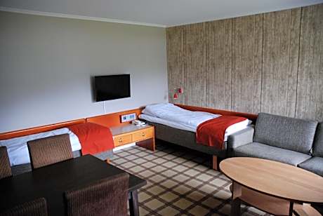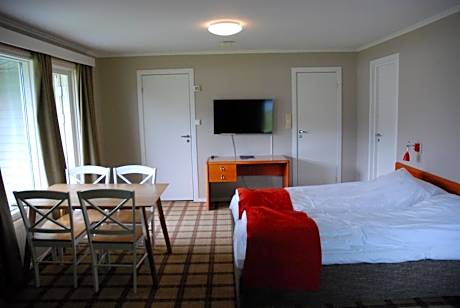 Set in a charming 19th-century building, Fleischer's Hotel enjoys a picturesque location by Lake Vangsvatnet, right next to the Voss Train Station. Each guest room combines classic elegance with modern comfort, featuring crystal chandeliers, rich fabrics, and timeless décor. Some rooms also include a private balcony with scenic views. The hotel’s restaurant serves traditional dishes inspired by local recipes, while the fully licensed bar offers a wide selection of drinks. During warmer days, guests can dine or relax with a drink on the spacious terrace overlooking the lake. Guests can enjoy free Wi-Fi, complimentary private parking, and access to the hotel’s inviting pool area. The wellness area includes a children’s pool, swimmingpool, hot tub and sauna. The surrounding area is ideal for outdoor activities such as hiking, fishing, canoeing, and skiing, making Fleischer's Hotel a perfect destination year-round.