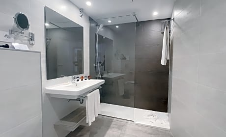 - Mampara acrílica entre huéspedes y personal en zonas de contacto principales