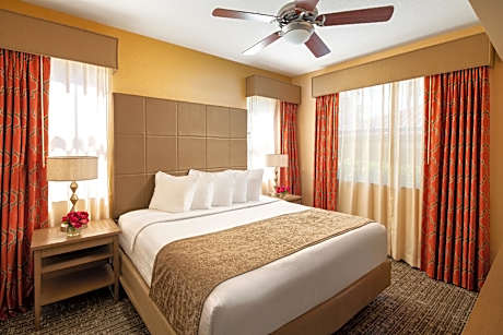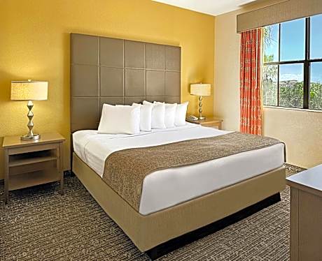 Located on International Drive, this pet-friendly Orlando resort features a 22,000-square-foot welcome center and 2 outdoor pools. The Walt Disney World theme parks are just a 10 minutes' drive away. The property is 4.1 mi from the Orange County Convention Center. Floridays Resort Orlando features 2- and 3-bedroom suites with a private balcony. Each suite offers a large kitchen, washing machine and tumble dryer, and a spa bath in the main bedroom. A 37-inch LCD TV and DVD/CD player are included. Floridays Resort’s Welcome Center features a well-equipped gym and a children’s activity room. Relax in the small outdoor pool overlooking the lake or play in the large outdoor pool’s water playground. Shuttle service is offered to/from the surrounding theme parks and water parks, including SeaWorld Orlando and Walt Disney World also Universal Epic Universe is closeby. Palm Café & Marketplace is open daily serving breakfast, lunch, and dinner. Proudly serving Starbucks® coffee, assorted hot and cold entrees, salads, pizza, and a kid's menu. The Orlando Premium Outlets Mall is less than 5 minutes' drive from this upscale resort.