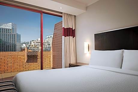 El Four Points Hotel de Santiago está situado junto al Parque de Las Esculturas, a 200 metros de la estación de metro Los Leones. Cuenta con una piscina en la azotea con vistas a la cordillera de los Andes. El centro comercial Costanera está a 5 minutos a pie. Las habitaciones del Four Points Sheraton Santiago ofrecen vistas panorámicas a la ciudad. Todas las habitaciones cuentan con TV de pantalla de plasma con canales por cable, minibar y conexión a Internet de alta velocidad. El restaurante Buganvilia ofrece un menú variado de cocina local e internacional, así como una selección de los mejores vinos chilenos. Hay muchos otros sitios para comer a pocos minutos a pie del hotel. Los huéspedes pueden relajarse en la piscina al aire libre y disfrutar de las vistas desde la terraza solárium de la azotea. El establecimiento también cuenta con un gimnasio y bañeras de hidromasaje. El Four Points Santiago está a menos de 20 minutos en coche del aeropuerto internacional y hay servicio de traslado disponible.