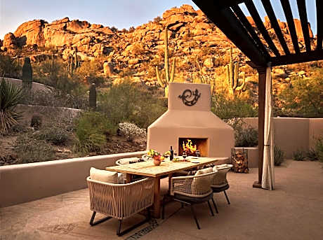 Este lujoso resort en Scottsdale, Arizona, cuenta con 2 piscinas al aire libre y se encuentra a 5 minutos en coche del club de golf Troon North. Todas las elegantes habitaciones y suites cuentan con balcón o terraza privados. Con vistas al desierto o a la piscina, todas las elegantes habitaciones del Four Seasons Resort Scottsdale at Troon North incluyen albornoces y zapatillas. Inspiradas en el adobe, todas las habitaciones cuentan con refinados muebles de madera, sábanas color crema y detalles en rojo. Se ofrecen comodidades modernas como TV de pantalla plana y soporte para iPod. El hotel cuenta con pistas de tenis. El conserje puede ayudar a los huéspedes a reservar en los 3 restaurantes del Four Seasons Resorts Scottsdale at Troon North. El restaurante junto a la piscina, Saguaro Blossom, ofrece ensaladas frescas y otros platos ligeros. El restaurante Talavera ofrece un menú de temporada con cocina de carnes. El Onxy Bar & Lounge, de inspiración suroeste, ofrece platos ligeros, cócteles, cerveza y vino. El casco antiguo de Scottsdale está a 32 km. El Museo Heard North Scottsdale está a 20 minutos en coche del Four Seasons Resort Scottsdale at Troon North.