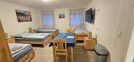 This quadruple room is consisted of of a flat-screen TV with streaming services, a shared bathroom as well as a balcony with an inner courtyard view. The unit has 4 beds.