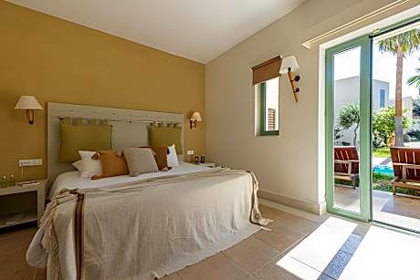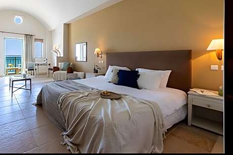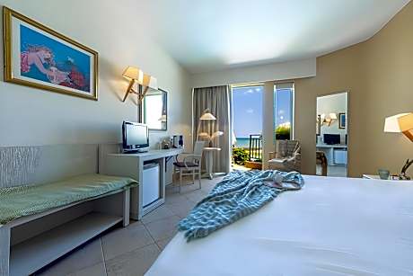 On the beautiful beach of Kolymbari, 12 mi from the city of Chania, lies Grand Bay Beach Resort. The resort features an outdoor hot tub. The resort offers 75 airy and well appointed rooms and suites fully equipped with satellite TV and mini-bar. All units offer balconies with views to the garden or the sea. Greek breakfast is served daily in the dining area. Guests can dine at the snack bar or the hotel’s restaurant. At the swimming pool bar and main bar they can enjoy a drink, a coffee or refreshments. Transfers by taxi can be arranged at extra charge.