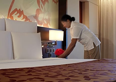Experience an abundance of unparalleled facilities and features at Goa Marriott Resort & Spa. Maintain seamless communication using the complimentary Wi-Fi at hotel. Effortlessly arrange transportation to and from the airport using the hotel's airport transfer services. Discovering Goa becomes even more accessible through the taxi, car hire and shuttle amenities provided at the hotel. For visitors traveling by automobile, complimentary parking is available.During your stay at this fantastic hotel, the attentive front desk personnel can provide you with a range of amenities such as concierge service, express check-in or check-out, luggage storage and safety deposit boxes.In search of city's top entertainment, seek assistance at the hotel's ticket service and tours for reservations.At the hotel, utilize the on-site dry cleaning service and laundry service to maintain your beloved travel attire fresh, allowing you to bring fewer clothes. Craving relaxation? Make the most of your stay at the Goa Marriott Resort & Spa with convenient amenities like 24-hour room service, room service and daily housekeeping at your disposal. For visitors wishing to smoke, designated smoking zones can be found.At Goa Marriott Resort & Spa, every guestroom is provided with convenient amenities and fittings to ensure a comfortable stay. Enhance your experience at hotel with the knowledge that certain rooms are equipped with linen service, blackout curtains and air conditioning for your convenience. At Goa Marriott Resort & Spa, each visit offers an array of intriguing room configurations, featuring accommodations with separate living room and balcony or terrace, ensuring a distinct experience every time.Certain rooms boast in-room amusement features such as daily newspaper, television and cable TV, offering guests an enjoyable stay. In select rooms within the hotel, a coffee or tea maker, bottled water, instant coffee, instant tea and mini bar is available to cater to your requirements when desired. In the hotel, certain guest bathrooms come equipped with essential bathroom amenities, such as a hair dryer, toiletries, bathrobes and towels, ensuring a comfortable stay for guests. Be sure to stop by the elegant executive lounge where you can experience the lavish amenities and ambiance. Begin your day with a scrumptious on-site breakfast available each morning at Goa Marriott Resort & Spa. Begin your day feeling refreshed and invigorated as you enjoy a delightful cup of quality coffee available at the cafe situated within the hotel. At the hotel, an assortment of easily accessible and delicious meal choices are available to satisfy your appetite whenever it strikes.At Goa Marriott Resort & Spa, guests with diverse dietary needs are accommodated by offering an array of cuisine options, including kosher and halal. Create unforgettable moments with your fellow voyagers just steps away, at hotel's karaoke rooms, bar, nightclub and casino, for a delightful evening together. At Goa Marriott Resort & Spa, guests can access vending machines that provide light snacks and beverages 24 hours a day.At the hotel, discerning guests can also enjoy on-site culinary facilities like BBQ facilities tailored to their preferences.During your stay at hotel, an array of engaging activities and amenities guarantees a delightful experience.During your stay, don't forget to allocate some moments to experience the readily available shoreline. Conclude your holiday perfectly with a visit to massage, hot tub, salon, steam room and spa on your final days. Be sure to drop by the pool at hotel at least once during your stay.At Goa Marriott Resort & Spa, utmost care is taken to ensure guests' comfort. Relish your preferred beverage in your swimwear by the hotel's poolside bar. Discover the fitness amenities at hotel to maintain your health and strength during your getaway.
