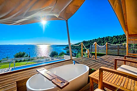Golden Haven Luxe Glamp Resort features a fitness center, a garden and a sun terrace with swimming pool and à la carte breakfast in Murter. Featuring room service, this property also has a restaurant and a grill. There is free private parking and the property provides paid airport shuttle service. All guest rooms at the resort are equipped with a seating area, a flat-screen TV and a safety deposit box. Featuring a private bathroom with a shower and free toiletries, some units at Golden Haven Luxe Glamp Resort also have a sea view. The rooms will provide guests with a fridge. Guests at the accommodation will be able to enjoy activities in and around Murter, like fishing. Koromasna Beach is 1.1 miles from Golden Haven Luxe Glamp Resort, while Sibenik Town Hall is 17 miles away. Zadar Airport is 43 miles from the property.
