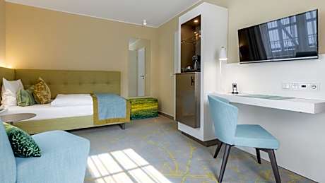 The perfect place to relax in nature? You have found it: THE VESPER, (directly) adjacent to a quiet nature reserve in the Felderbachtal (Wuppertal | Sprockhövel). DAS VESPER, with its 70 stylishly furnished rooms and suites, stands for modern comfort and absolute relaxation. It doesn't matter whether it's a conference, event or short vacation, because here you'll find enough space and the peace and quiet you need to recharge your body's batteries. Elegant bathrooms, free WiFi and an irresistible view of the green areas of our spacious complex are of course included. Every morning a rich breakfast buffet awaits you in the inviting restaurant, which leaves nothing to be desired. The á la carte restaurant impresses with seasonal dishes, fresh local ingredients and a very special atmosphere in the middle of greenery. On sunny days and long evenings, the path leads directly to the sun terrace to enjoy homemade cakes, freshly baked waffles or the dishes from the menu. NRW's largest 45-hole golf course right around the hotel makes golfers' hearts beat faster everywhere. No matter whether the two 18-hole courses or the 9-hole course, there is something for everyone here! A popular hiking trail starts right outside the hotel's front door and invites you to explore the beautiful landscape. In addition to hiking, Vesper also offers exciting activities such as geocoaching, and of course you can perfect your golf skills on the hotel's golf courses or take a tour through the charming town of Sprockhövel. Even if the peace and quiet in the beautiful nature of the Felderbachtal is tempting, it is worth it to visit Wuppertal | Explore Sprockhövel and the surrounding area. Industrial history meets impressive architecture, culture meets gastronomy and urban flair meets green nature. For an uncomplicated journey, the A46 motorway is only 1.2 mi away. The Schwelm S-Bahn station can be reached in about 15 minutes by car and offers direct connections to Wuppertal and Dortmund, so you can easily take trips to the surrounding cities at any time.