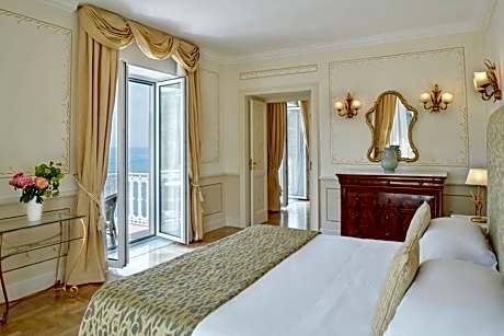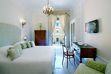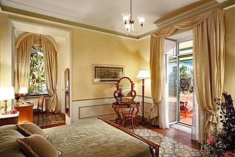 On a rock overlooking the Bay of Naples, the Vittoria includes 3 historic buildings set in a private Mediterranean park. The property's entrance is in Sorrento’s main square. A elevator links directly to the harbor. Grand Hotel Excelsior Vittoria's La Serra spa is complete with hot tubs and massage rooms. The outdoor swimming pool with hydromassage area is set on a sun terrace with free parasols, sun beds and deck chairs. With elegant parquet or tiled floors, all rooms come with free Wi-Fi, air conditioning, and flat-screen TV with satellite channels. Some rooms offer a balcony overlooking the bay, or the beautiful Mediterranean gardens. There are several top-quality restaurants on site, and an elegant bar with sea views. Entertainment and live music are organized regularly. Breakfast is a varied sweet and savory buffet. Private parking with valet service is available on site. A pick up service from Napoli Train Station is available on request.