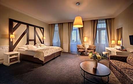Accommodations Grand hotel Starý Smokovec is located in Starý Smokovec, 11 mi from Štrbské pleso. Guests have access to a common room, paid hotel parking, a terrace and a bar. The accommodations features a restaurant, room service and a 24-hour front desk, as well as free WiFi throughout the property. This hotel offers ski pass sales. Each room at Grand hotel Starý Smokovec has a wardrobe, a flat-screen TV and a private bathroom. Towels and bed linen are also part of the equipment. The rooms have a private bathroom with free toiletries, and some rooms at Grand Hotel Starý Smokovec also offer a balcony. All accommodations units have a safe. At the Grand Hotel Starý Smokovec, a buffet breakfast is served every day. You can relax in the spa and wellness center with an indoor pool, sauna and hot tub or in the garden. This 4-star hotel is located in an area popular with hiking and skiing enthusiasts. You can play billiards on site. Guests staying at the Grandhotel**** Starý Smokovec have ski passes, cable car tickets in the resorts of Jasná Nízke Tatry, Vysoké Tatry (Štrbské Pleso, Starý Smokovec- Hrebienok and Tatranská Lomnca) and entrance to the water parks Tatralandia and Vodný park Bešeňová included in the price of their stay. Accommodations Grand hotel Starý Smokovec is located 15 mi from the place Chodník koronami stromov and 27 mi from the place Dobšinská ice cave. The nearest airport (Poprad-Tatry Airport) is 9.3 mi from Grand hotel Starý Smokovec.