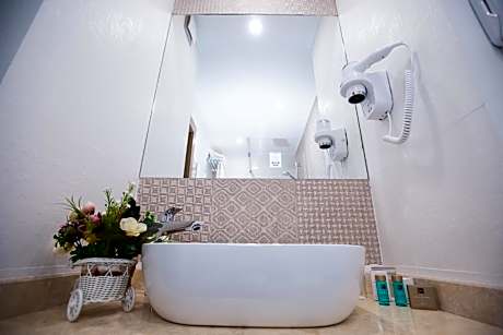Providing free toiletries and bathrobes, this triple room includes a private bathroom with a shower, a hairdryer and slippers. The air-conditioned triple room provides a flat-screen TV, soundproof walls, a mini-bar, a wardrobe as well as an inner courtyard view. The unit offers 2 beds.