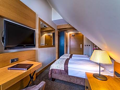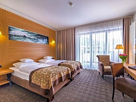 Grand Nosalowy Dwór is located at the foot of the Nosal Mountain in Zakopane. It features a recreational center and apartments and rooms with flat-screen cable TVs and free Wi-Fi. The Nosalowy Dwór’s bright rooms and apartments feature wooden furniture in warm colors, which includes a work desk. All rooms are heated, and have a mini-bar, refrigerator and safety deposit box. Guests can get a workout at the Grand Nosalowy’s fitness center, go for a swim in the indoor swimming pool or play a game of billiards. A sauna and steam bath are also at their disposal. The guest accommodations also organizes a skiing school and offers a ski storage service. The nearest ski elevator on the Nosal Mountain is only 459 feet away. Wielka Krokiew Ski Jumping Venue is within 0.9 mi. The on-site restaurant, Grand, offers a selection of Polish and worldwide dishes, as well as original dishes prepared by the chef. The Sport Bar Lobby offers drinks and warm beverages. The Panoramika Café features scenic views of the area.