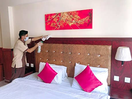 - A los huéspedes se les proporciona desinfectante de manos gratuito.