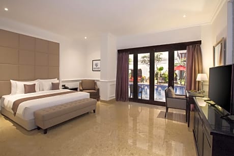 At Grand Palace Hotel Sanur - Bali, exceptional service and top-notch amenities create a memorable experience for guests. Complimentary internet access is available in the hotel to ensure you stay connected during your visit. Arrange your trips to and from the airport using the hotel's convenient transportation services booking. Discover the wonders of Bali with ease by utilizing the services provided by taxi, car hire and shuttle.Complimentary parking is available for guests.Continuously receive the support you require through front desk amenities such as concierge service, express check-in or check-out, luggage storage and safety deposit boxes. At the hotel, their tours can even assist you in booking tickets and securing reservations for leisure activities and adventures. Always look your best in your preferred attire with the dry cleaning service and laundry service provided at Grand Palace Hotel Sanur - Bali.Craving relaxation? In-room amenities such as 24-hour room service, room service and daily housekeeping allow you to maximize your time spent inside the room. Additionally, you can obtain minor travel essentials and miscellaneous items at the convenience stores without departing from the Grand Palace Hotel Sanur - Bali. For the health and well-being of all guests and staff, smoking is restricted exclusively to assigned zones. Accommodations come equipped with all the conveniences required for a restful night's slumber. A selection of rooms feature linen service, blackout curtains and air conditioning to ensure your comfort and convenience. A few accommodations at Grand Palace Hotel Sanur - Bali also include unique design elements like a balcony or terrace. A few chosen rooms are equipped with television and cable TV to ensure guest amusement.In certain rooms, the hotel offers visitors access to a refrigerator, a coffee or tea maker, bottled water, instant coffee, instant tea and mini bar.Grand Palace Hotel Sanur - Bali offers a hair dryer, toiletries and bathrobes in the restrooms of specific accommodations. At Grand Palace Hotel Sanur - Bali, each day commences with a scrumptious breakfast offered at no additional cost.Allow your journey to be free from the pangs of hunger! On-site eateries offer delicious and accessible meal choices. An evening spent at hotel's bar can offer as much enjoyment as venturing out with your fellow travelers. At Grand Palace Hotel Sanur - Bali, experience the ease of having groceries brought straight to your accommodation through their efficient service.Are you inclined to prepare your own dishes? You will surely appreciate having the on-site shared kitchen available. At Grand Palace Hotel Sanur - Bali, guests can take pleasure in the delightful recreational amenities provided for their entertainment. Conclude your days in complete tranquility by paying a visit to massage, spa and sauna for ultimate relaxation.At Grand Palace Hotel Sanur - Bali, a wide array of amenities guarantees a fulfilling experience throughout your visit. Make your holiday truly memorable by taking a rejuvenating plunge into the pool. At the hotel fitness center, you have the option to engage in your daily exercise routine or simply alleviate your jet lag by breaking a sweat.