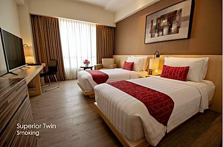 Offering 2 dining options and an outdoor swimming pool, the 4-star Grand Zuri BSD City features free Wi-Fi in public areas. Just a 5-minute drive from the International Trade Center, it features air-conditioned rooms with a flat-screen TV. Rooms come with modern interiors and large windows that offer natural light. Each well-appointed unit is equipped with a seating area, personal safe and mini-bar. A shower and free toiletries are in the attached bathroom. Recreational choices include exercising at the gym, or enjoying body treatments at the spa. The property also has a 24-hour front desk and business center, where staff can assist with car rental services. BSD City Grand Zuri is a 5-minute walk from Terrace Kota and Giant Supermarket. Soekarno-Hatta International Airport is a 35-minute drive away.