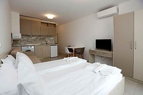 The stylish Green Life Apartments Sozopol in Sozopol is located on the beachfront and features 4 large outdoor pools. It offers free WiFi and free parking on site. All apartments in this beach resort are air-conditioned and have a balcony and a cable TV. They feature Italian designer furniture in classic or modern style. A children's section is available in two of the pools. A children's club is also on site. Bulgarian specialties and international cuisine is served in the elegant restaurant. The historic center of Sozopol is 1.9 mi away from Green Life Apartments Sozopol. Burgas Airport is 25 mi away. An airport transfer and a shuttle to Sozopol are available on request for a surcharge.