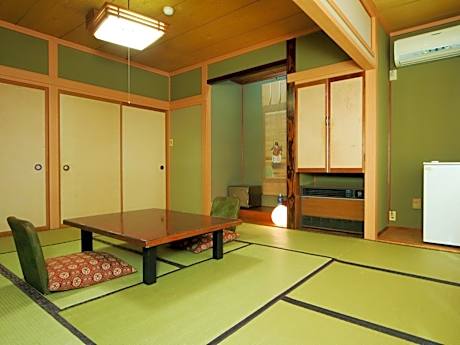 The quadruple room offers air conditioning and tatami, as well as a shared bathroom boasting a bidet. A safe deposit box, an electric kettle and heating are offered in this quadruple room. The unit has 4 futons.